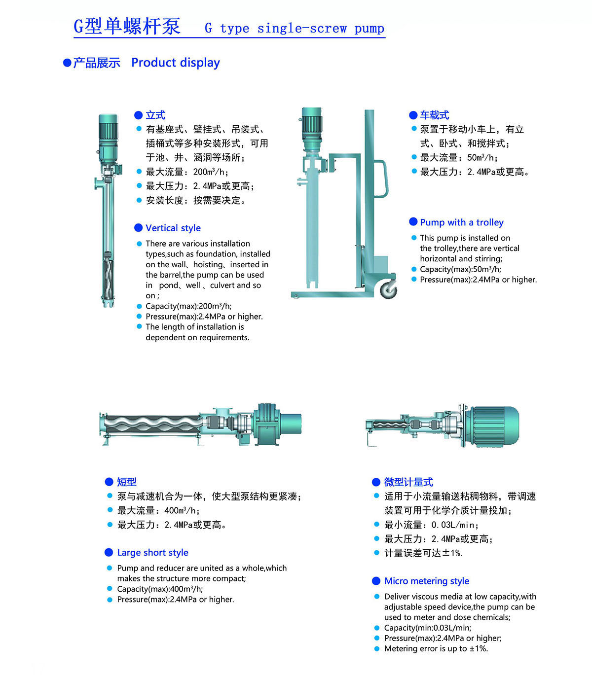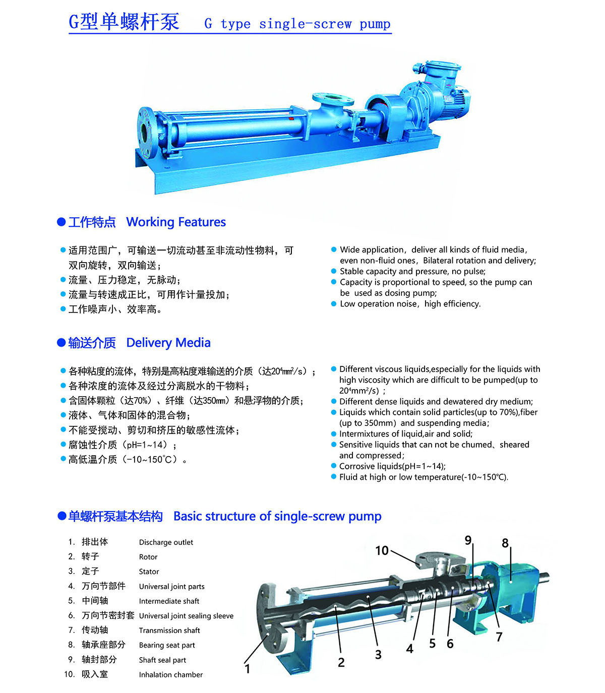 適用范圍廣,可輸送一切流動(dòng)甚至非流動(dòng)性物料,可雙向旋轉(zhuǎn),雙向輸送;流量、壓力穩(wěn)定,無脈動(dòng);流量與轉(zhuǎn)速成正比,可用作計(jì)量投加;工作噪聲小、效率高。