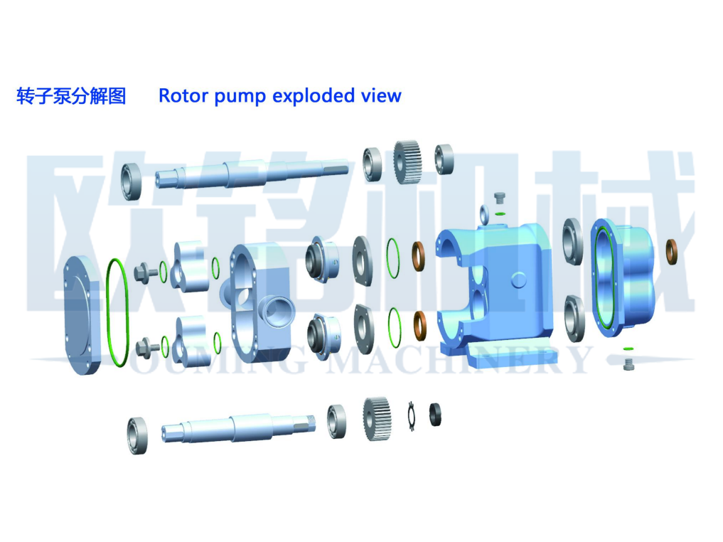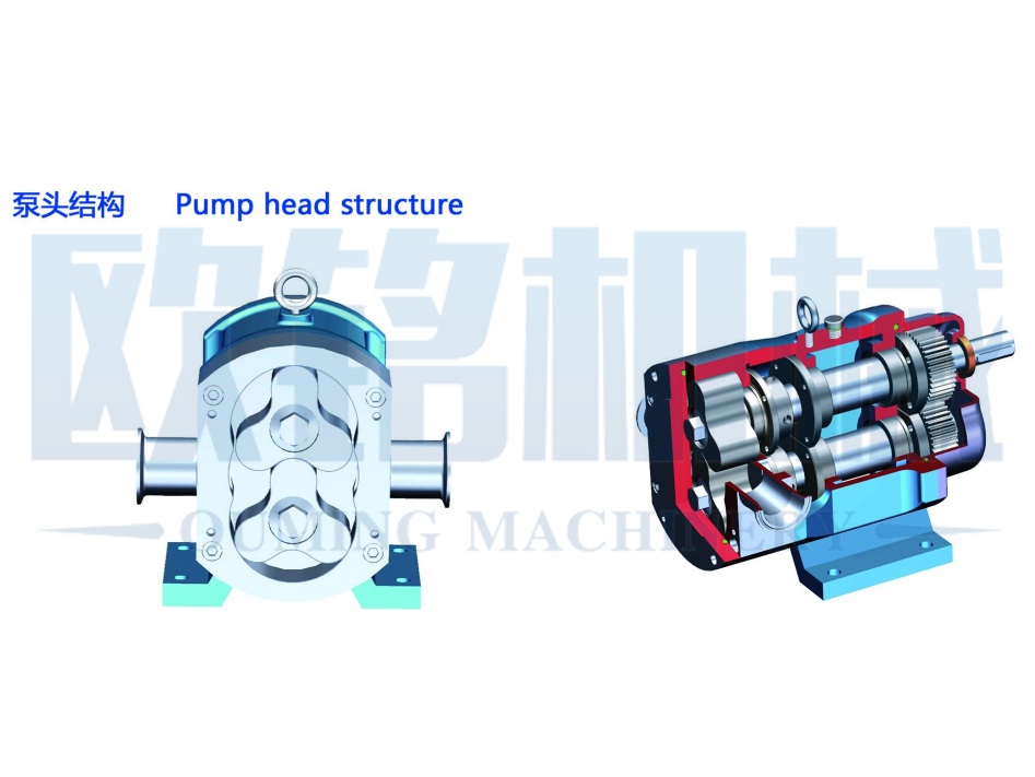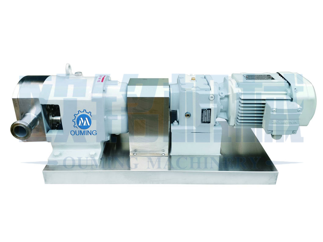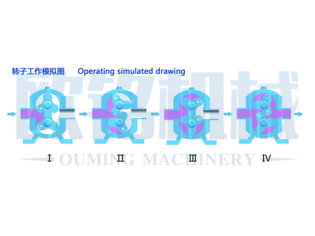 該產(chǎn)品借助于工作腔里的多個(gè)固定容積輸送單位的周期性轉(zhuǎn)化來(lái)達(dá)到輸送流體的目的。原動(dòng)機(jī)的機(jī)械能通過(guò)泵直接轉(zhuǎn)化為輸送流體的壓力能,泵的流量只取決于工作腔容積變化值以及其在單位時(shí)間內(nèi)的變化頻率,而(理論上)與排出壓力無(wú)關(guān);轉(zhuǎn)子泵依靠?jī)蓚€(gè)同步反向轉(zhuǎn)動(dòng)的轉(zhuǎn)子(轉(zhuǎn)子葉數(shù)為2-8)在旋轉(zhuǎn)過(guò)程中于進(jìn)料口處產(chǎn)生吸力(真空度),兩轉(zhuǎn)子將轉(zhuǎn)子室分隔成幾個(gè)小空間,在傳動(dòng)軸的帶動(dòng)下進(jìn)行反方向旋轉(zhuǎn),介質(zhì)即被輸送至出料口,從而產(chǎn)生了較高的排放壓力,如此往復(fù)循環(huán),特別適合中高粘度介質(zhì)的輸送。